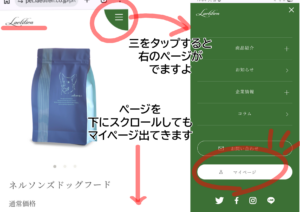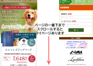 - ネルソンズ公式サイトのトップページ一番下にある「マイページ」ボタンを押します。