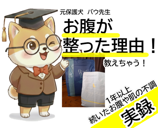 実はわが家のバウ先生(元保護犬・20kg超え)も、わが家に来てから1年以上、ずっと軟便と肌荒れが続いていました。